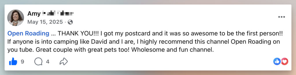 Our 2026 travels will take us through New York, Connecticut, Rhode Island, Massachusetts, Maine, Ontario, Michigan, Minnesota, and Colorado. If you’ve participated in the postcard club before, we try very hard not to send you a postcard from the same state as last year!